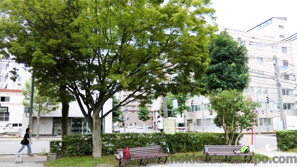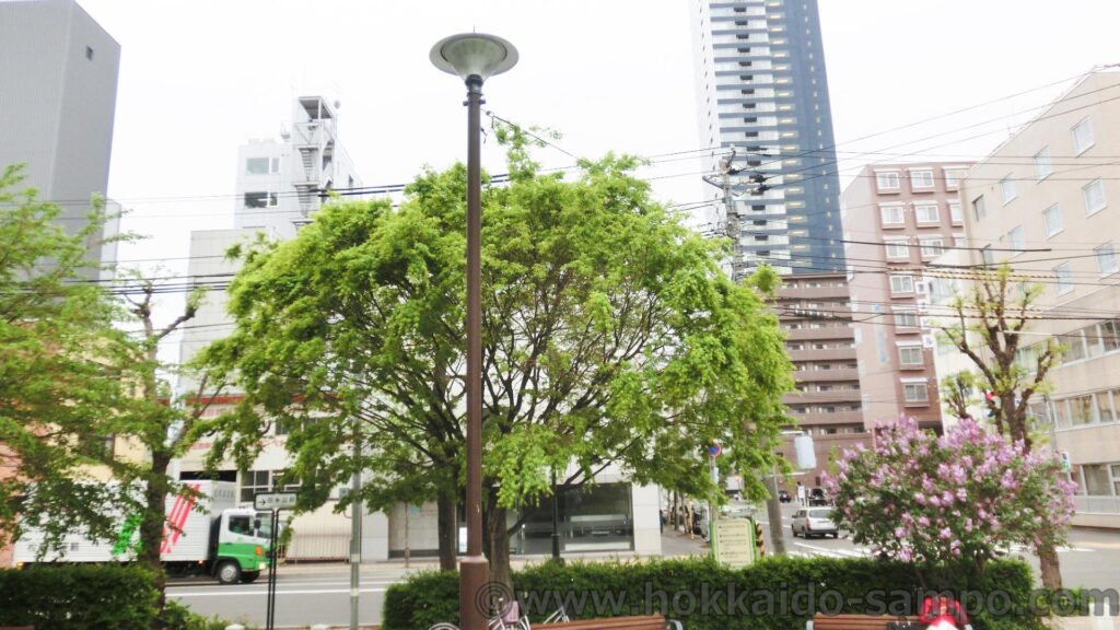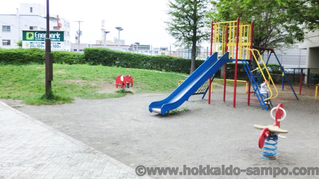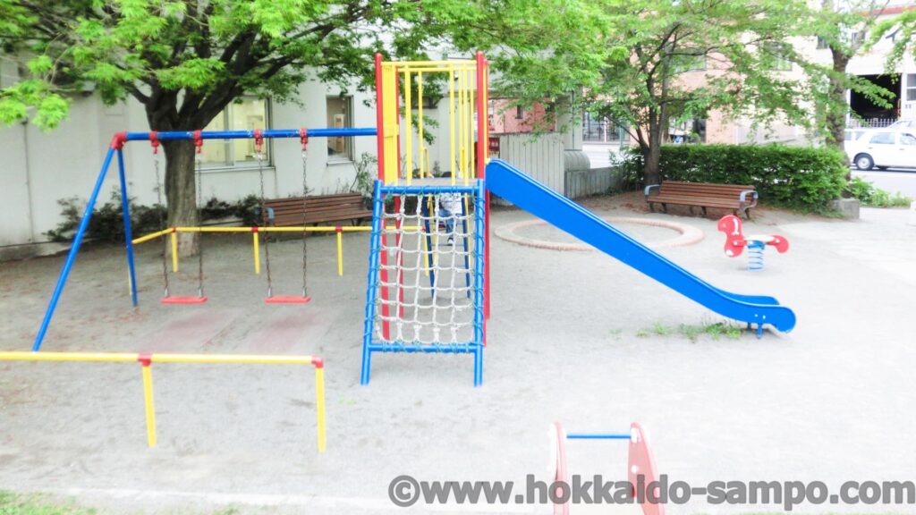 ここを通りすがるときはたいていサッポロファクトリーに行くときなのだが、冬だとたいてい近隣の保育園のこどもたちが雪遊びをしている。つなぎを着て、ギリギリ滑れる小さな雪山をみんなで楽しそうに遊んでいる光景は尊い。雪のない時期に見ても非常に僅かながら起伏が作られている。北海道の公園は雪の時期にそなえて築山を設置してあることが多いが、ここはあまりしっかりした雪山を作ると滑った勢いでソリが道路にまで出てしまってあぶないので、本当に若干である。雪遊びを前提としていないのではという程度の若干の起伏、そこをしっかり遊んでしまえるこどもたちのパワフルさも尊い。