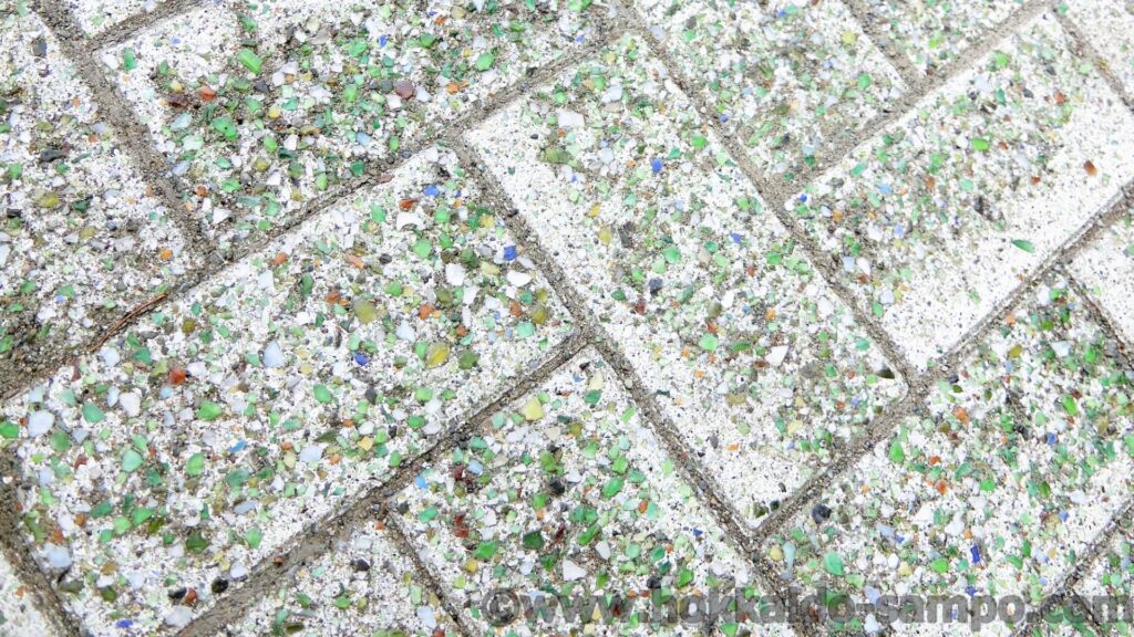 この公園が整備された年がいつからか分からないけれど、オープンしたての頃はそれはそれは奇麗であったであろう敷石。七色に輝くあそぶべ公園も見てみたかった。今では実現しなさそうな、コストがかかりそうな演出…