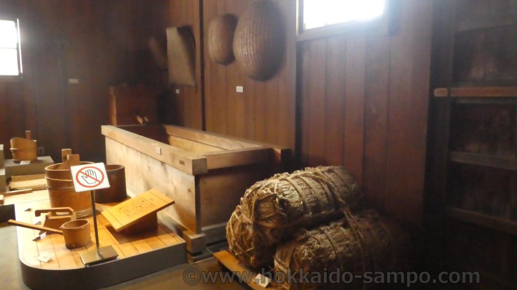 この旧武井商店酒造部は、お酒を造っていた場所なだけあって内部はかなり広く、長く続く土間は入り組んでいて展示物も多くたいへん面白い。土方歳三が銀行を襲ったとき、隣の遊女の置屋(お茶屋?)から襲ったが、その階段部分もここではないかと思う
