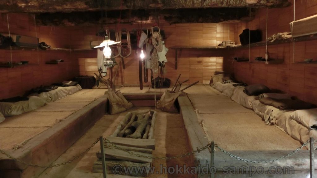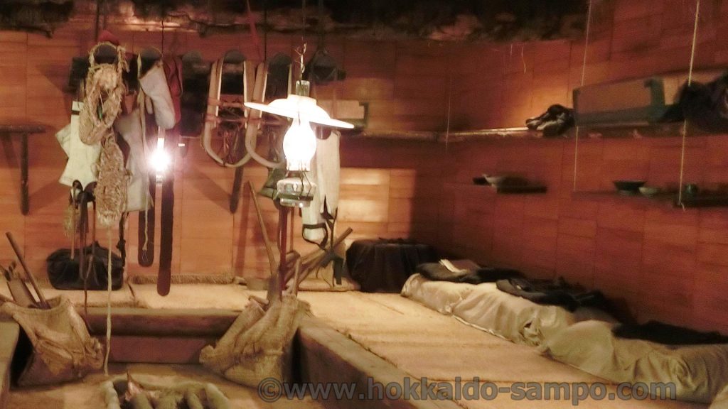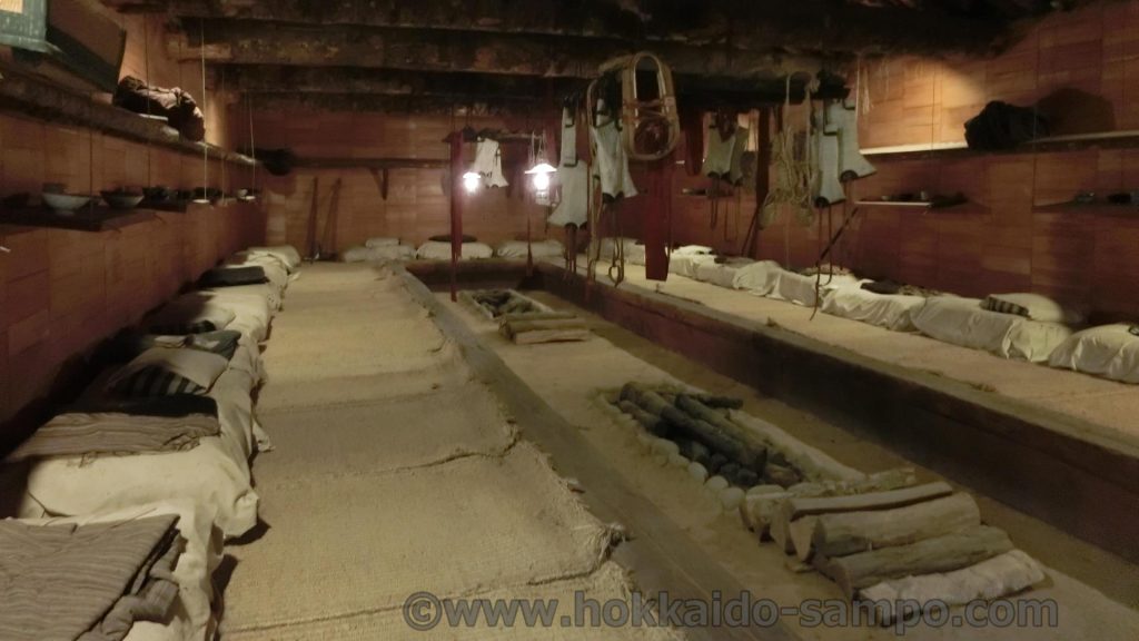 ここは開拓の村でも訪問者が少ないエリアで結構森の中にある。実際山の中にあったものを再現しているので場所も森の中が選ばれているという訳だ。これは大正後期築の再現。伐採・造材を繰り返して開拓された北海道。その男たちの飯場。現在の正式名称は「旧平造部飯場」。