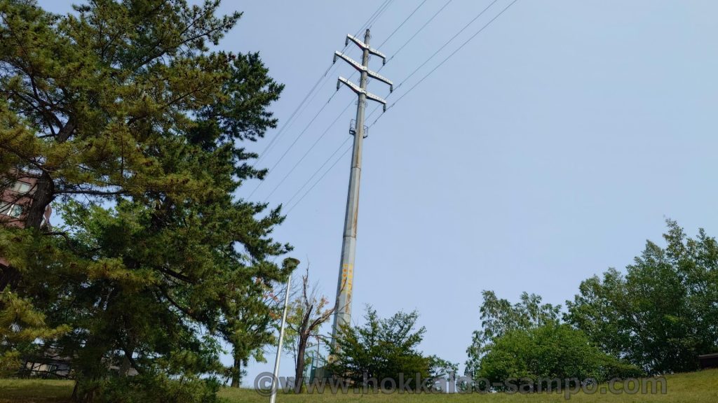 昔「ハエタタキ」と呼ばれた形状の木製電柱によく似た形。ちょっぴり珍しい。この電柱も水曜どうでしょうによく映っていました。
