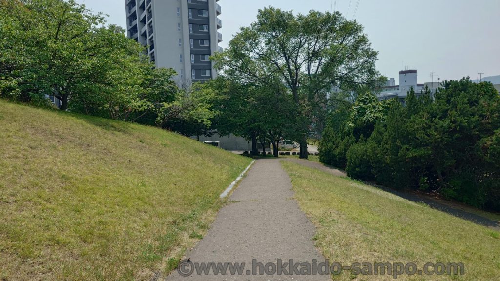 このあたりは公園だけでなく駅から延びる道も結構急な坂にある。その坂を上っていくとHTBというローカルテレビ局があり、ビルにonちゃんというキャラクターをはめ込んだ立派なビルだったが今は時計台の近くに巨大な新ビルを建てて平岸の方の社屋は解体されている。