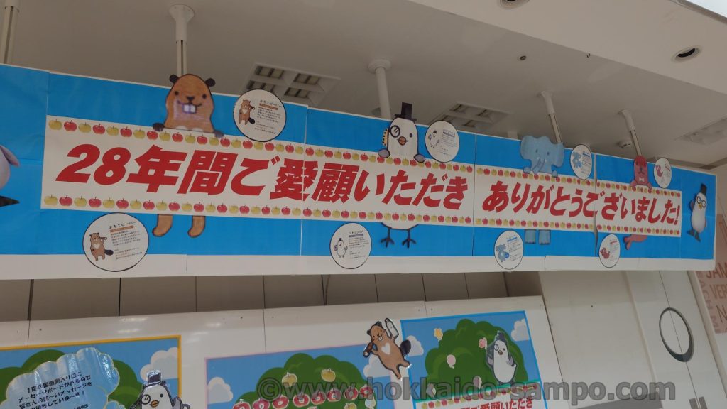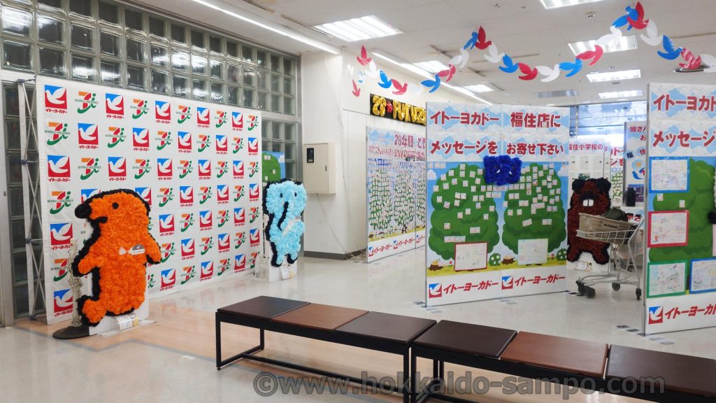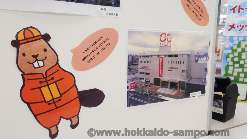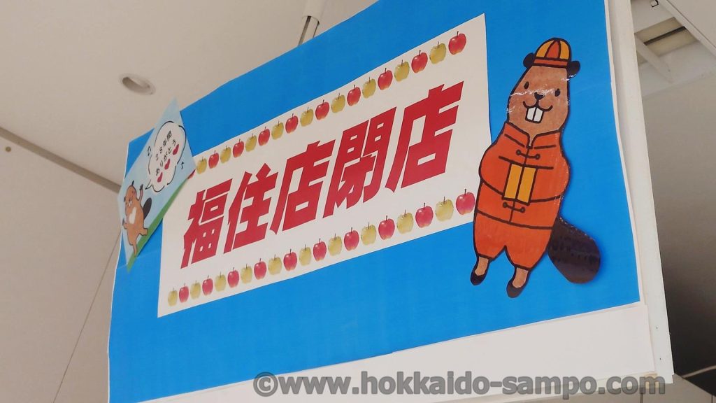 エゾリスにも見えた「よろこビーバー」。「福住店閉店」の横でそんなに落ち込んでいない表情がかわいくもある。