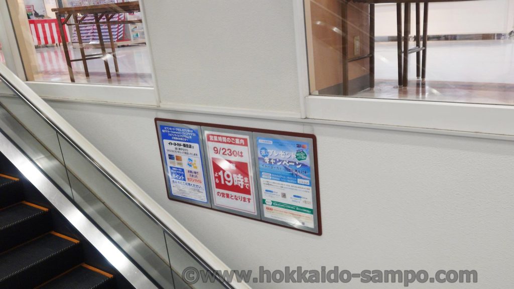 エスカレーターはこのお知らせ一色です。閉店なのでポイント利用はお早目にとのこと。