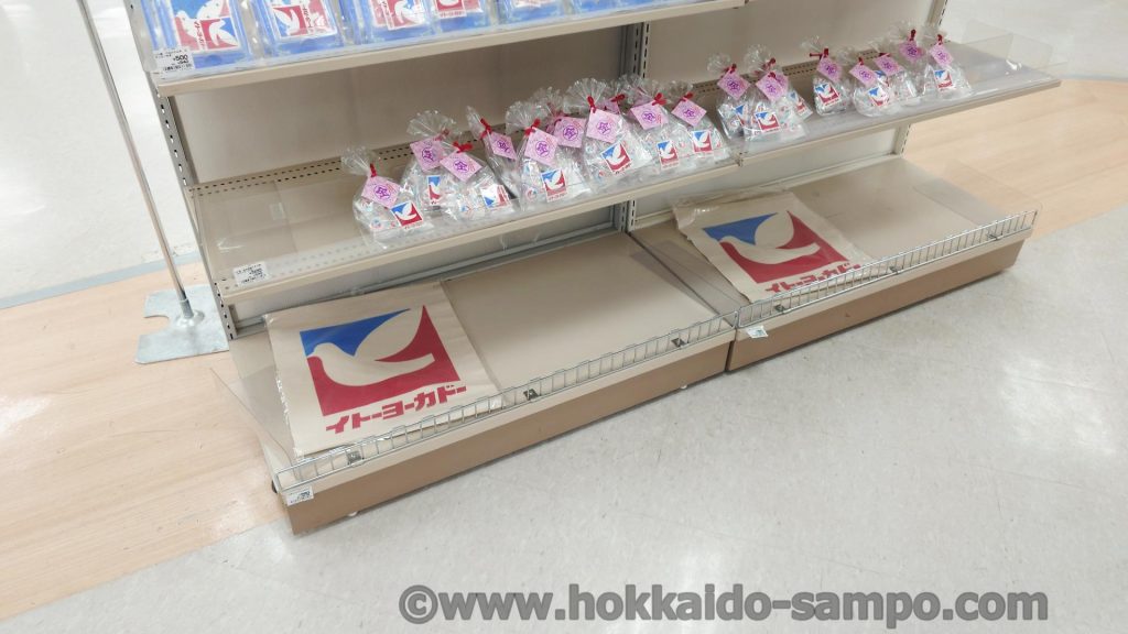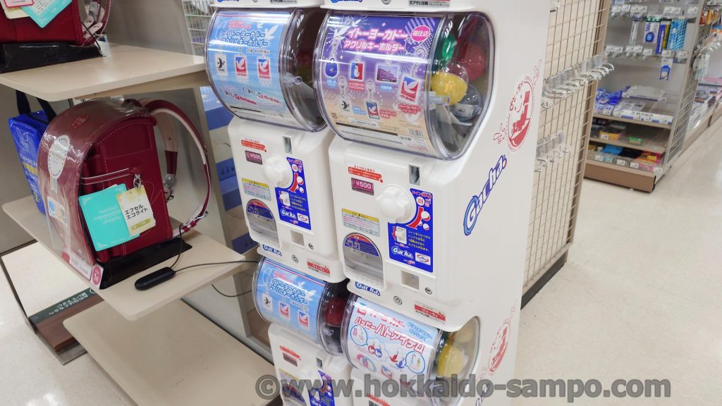 福住店より1ヶ月ちょっと先に閉店したイトーヨーカドー北見店の記事でも書いた気がしますが、道民にとってイトーヨーカドーでランドセルが買える最後のチャンスですね。飽きがこなさそうな赤いランドセルが陳列されていました。オリジナルガチャもありました。ガチャガチャは別の階にもありました。