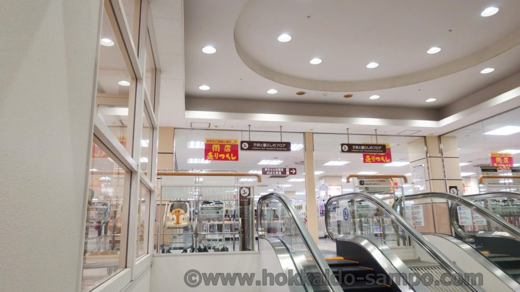 地下鉄駅直結のエントランス。前回の写真との違いは閉店売り尽くしのノボリが出ているところでしょうか。いよいよかという感じがします