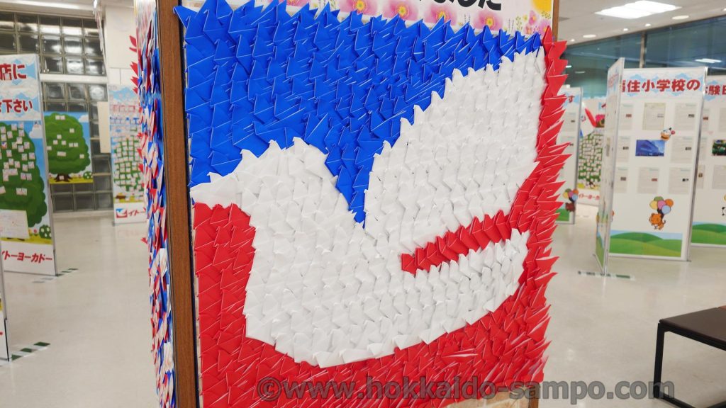 従業員のみなさんでハトをたくさん折ってハトを作ったんだそうです。たいへん