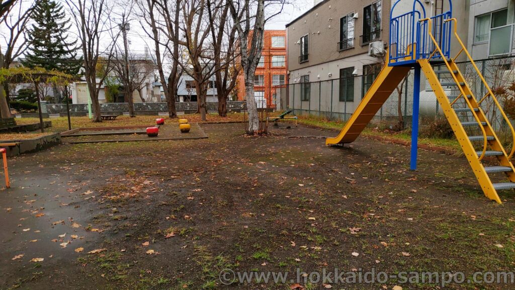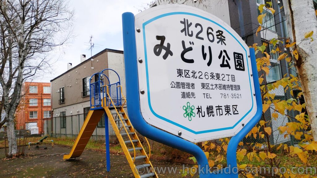 遊具の内容的にも、広さ的にも、なんてことはないかもしれない公園、北26条みどり公園。