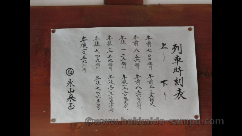 時刻表は待合所の分かりやすい場所に掲げられ、位置的にもさっと外に出やすいところにある