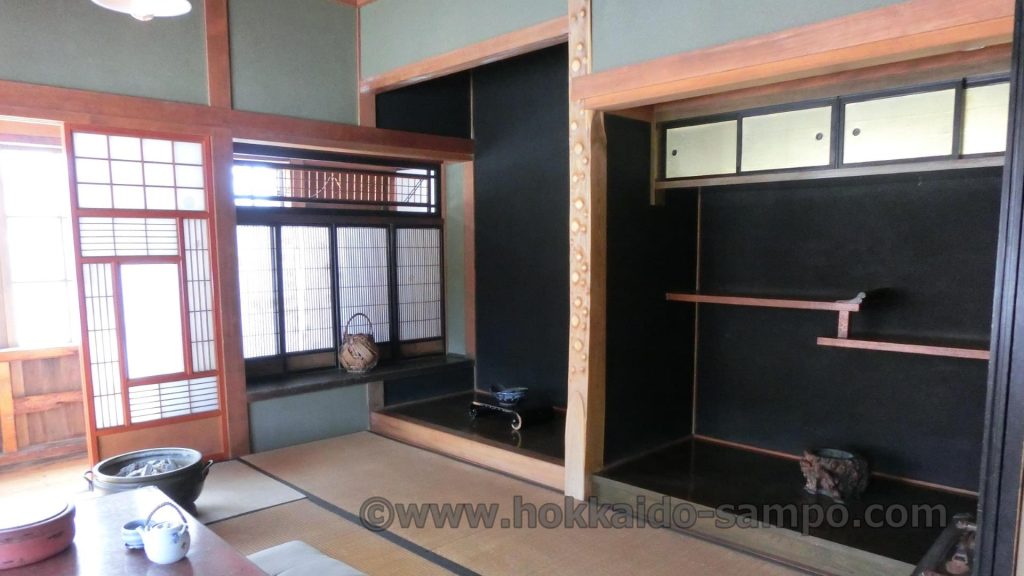 違い棚があり、掛け軸も掛けられていたであろう上等なお部屋。鯉登が鶴見中尉に会う時など、何度か登場する。