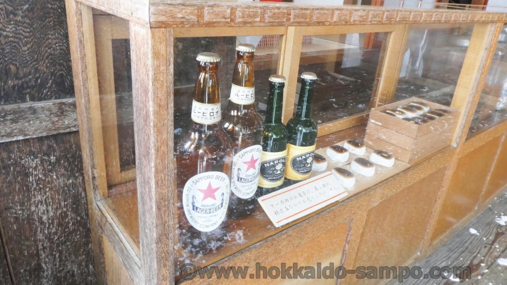古いビール瓶も並んでいておもしろい。焼きまんじゅうのようなものも見える
