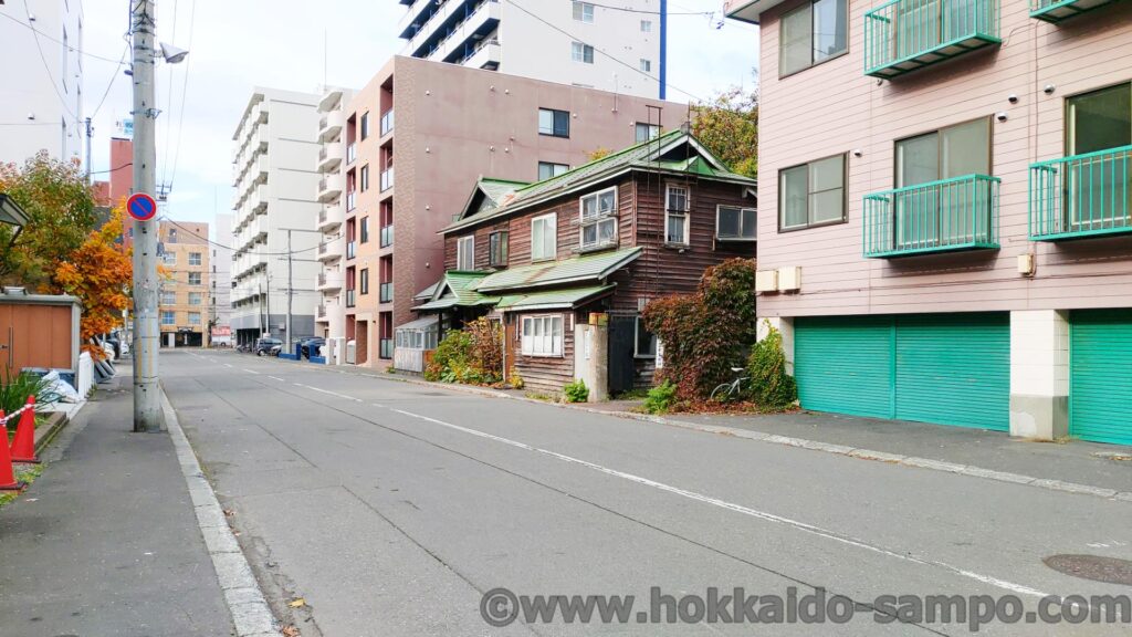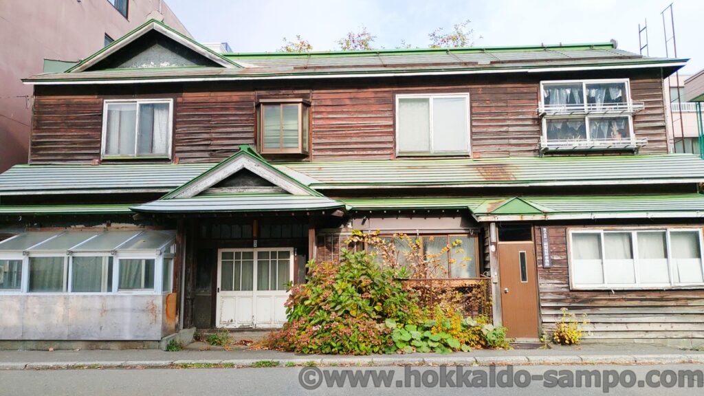 以前散歩した、狸小路の西端に程近い札幌祖霊神社の近くを歩いていると、急に現れる美しい木造建築。