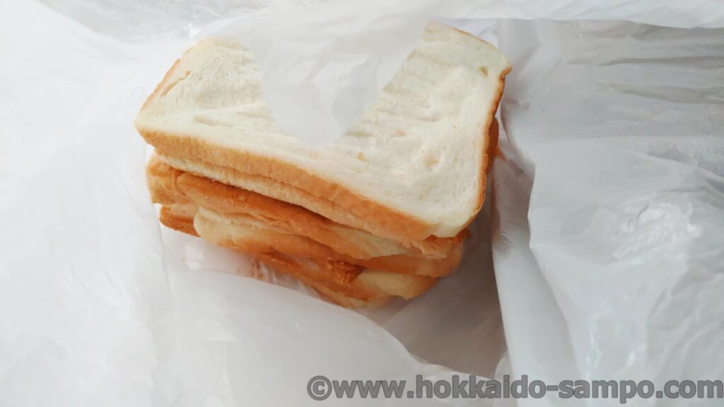 この日は買ったサンドイッチを近くの公園のベンチ(南9条緑地)で食べて、パンの耳はルンルンで持って帰りました。重いは重いですが幸せの重さですね(笑)