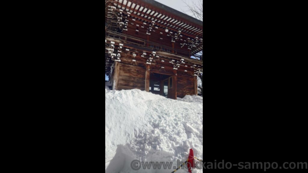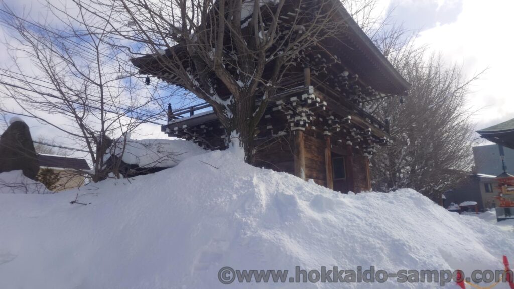 山門の方は雪に閉ざされていました。くぐることはできそうにありませんでしたが、その閉ざされた感じが厳しい冬に堂々たる姿で格好良さを増していました。