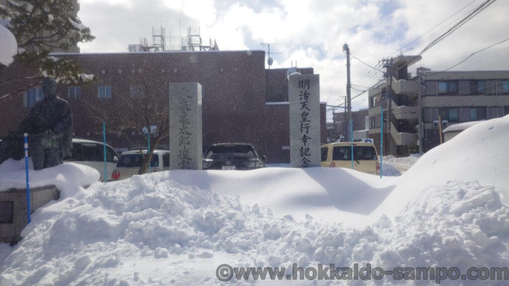 島義武と二宮尊徳と大友亀太郎が並んでいると教えてもらった気がするのですが…確証を持てないくらいに失念してしまいました。雪が溶けたら案内板が見えるかもしれません。また訪ねようと思います。