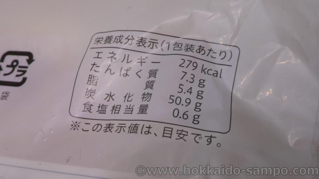 カロリーは279kcal。300kcal未満となると菓子パンとしてはだいぶ低い部類ですね。この辺りも地味に人気の秘密だったり?