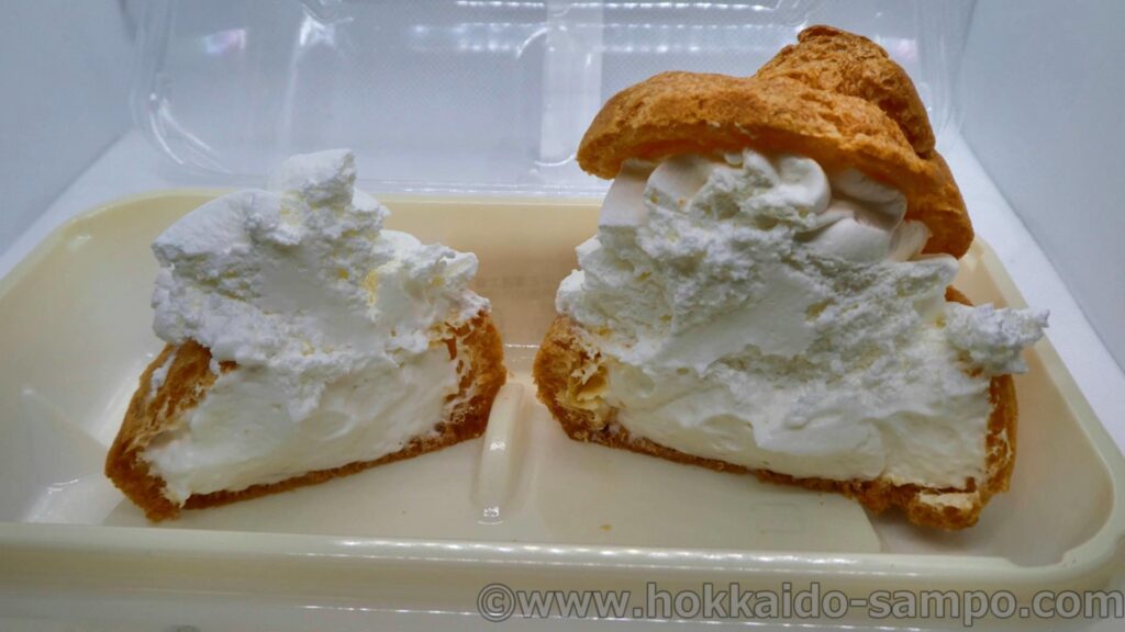 カスタード&ホイップというと、ふつう黄色のカスタードと白のホイップクリームなのだけど、こちらはカスタードではなく「ミルクカスタード」。白なのでぱっと見ぎっしりとホイップクリームに見える。