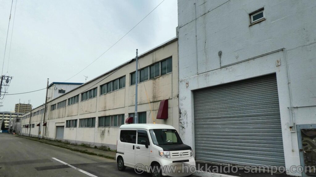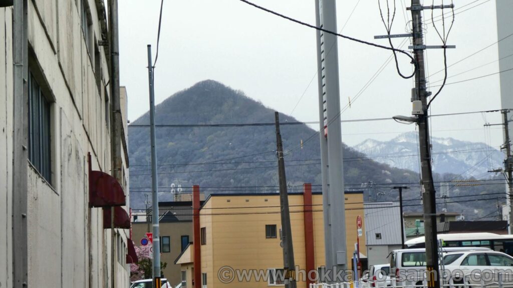 工場の先には札幌市西区のシンボル、その名も三角山がきちんと三角に見えている。