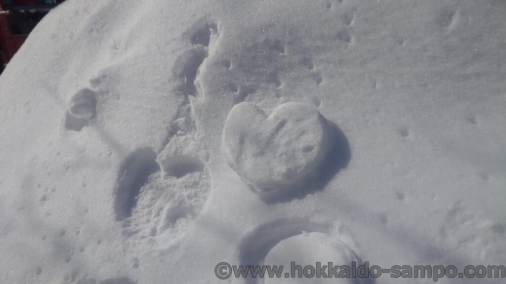 かわいい雪のアートも楽しみながら先へ。