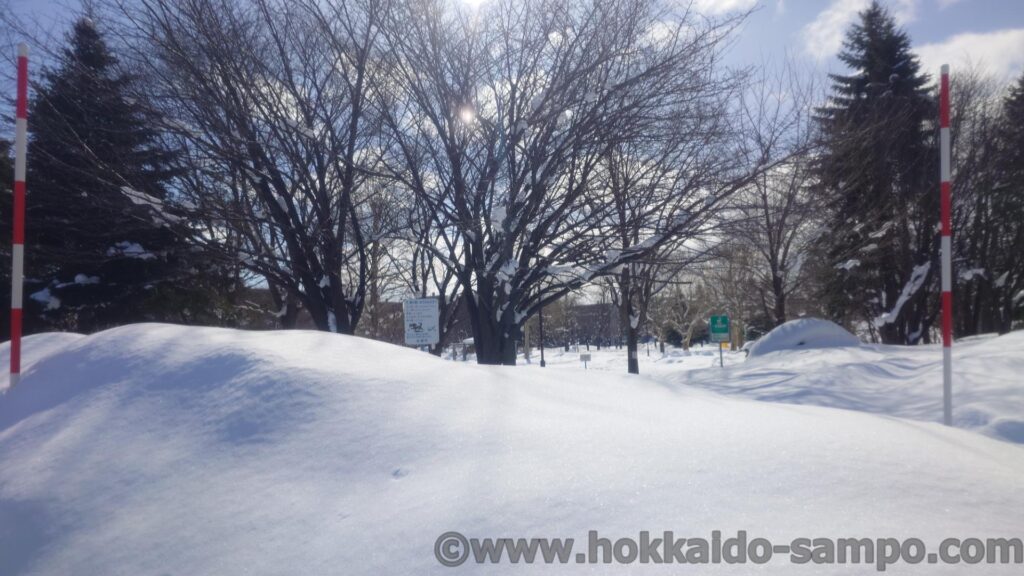 苗穂グリーン公園。初めて見ました。でも雪が深くて入っていくことができなさそうです。